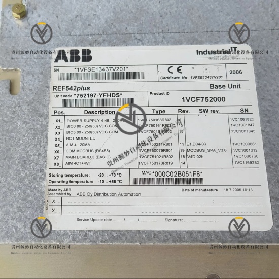 ABB REF542PLUS 1VCF752000是ABB Relion®系列旗下的数字式多功能馈线终端,专为10–36kV中压配电系统设计,是气体绝缘开关柜(GIS)、空气绝缘开关柜(AIS)的核心保护与控制组件。该产品集成保护、测量、控制、监测及电能质量分析五大核心功能,采用三处理器分离架构,可实现馈线、变压器、电动机等设备的全面保护与精准控制。产品支持模块化配置,配备内置HMI人机界面,兼容多种工业通信协议,可无缝接入ABB Ability™或第三方SCADA系统,具备完善的故障诊断与事件记录功能,适配工业配电各类严苛工况,为中压配电网络提供智能化、高可靠的保护与控制解决方案。