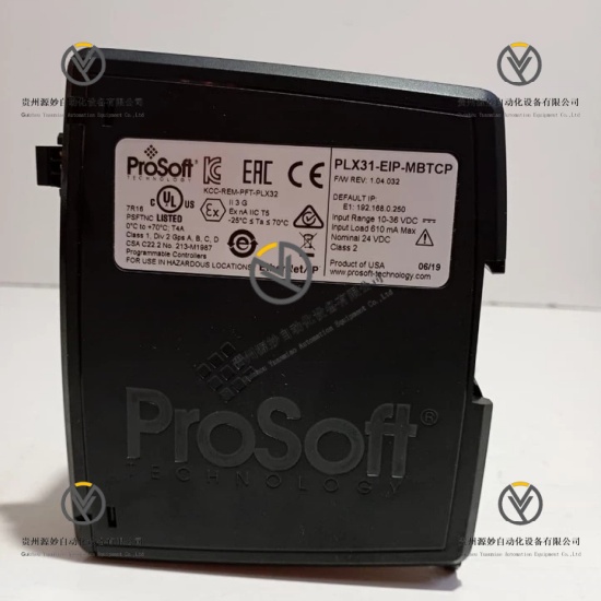 Prosoft PLX31-EIP-MBTCP为Prosoft原厂正品,适配性极强,可无缝对接EtherNet/IP与Modbus TCP/IP两大工业主流以太网协议,兼容罗克韦尔、施耐德等多个品牌的控制器及各类工业现场设备,无需更换现有网络设备即可实现异构网络集成,大幅降低系统升级和集成成本。该产品通信性能优异,支持高速双向数据传输,Modbus TCP/IP驱动具备多客户端和服务器功能,数据传输高效无明显延迟和丢包,数据优先级管理功能可优化以太网带宽,内置嵌入式EDS附加组态文件,简化集成流程、缩短调试时间。产品可靠性突出,采用工业级高品质元器件和电气隔离设计,具备优异的抗电磁干扰、抗冲击和抗振动能力,可在-25℃至70℃宽温环境及多尘、强电磁干扰等严苛工况下连续稳定运行,SD卡插槽设计可实现配置文件备份与快速故障恢复,减少系统停机时间。模块化独立设计便于安装、维护和系统扩容,标准DIN导轨安装方式节省控制柜空间,通过专用配置软件和工具可快速完成参数设置、IP配置和故障诊断,无需复杂编程,大幅提升运维效率,为工业自动化系统的异构网络通信提供稳定、高效的支撑。
